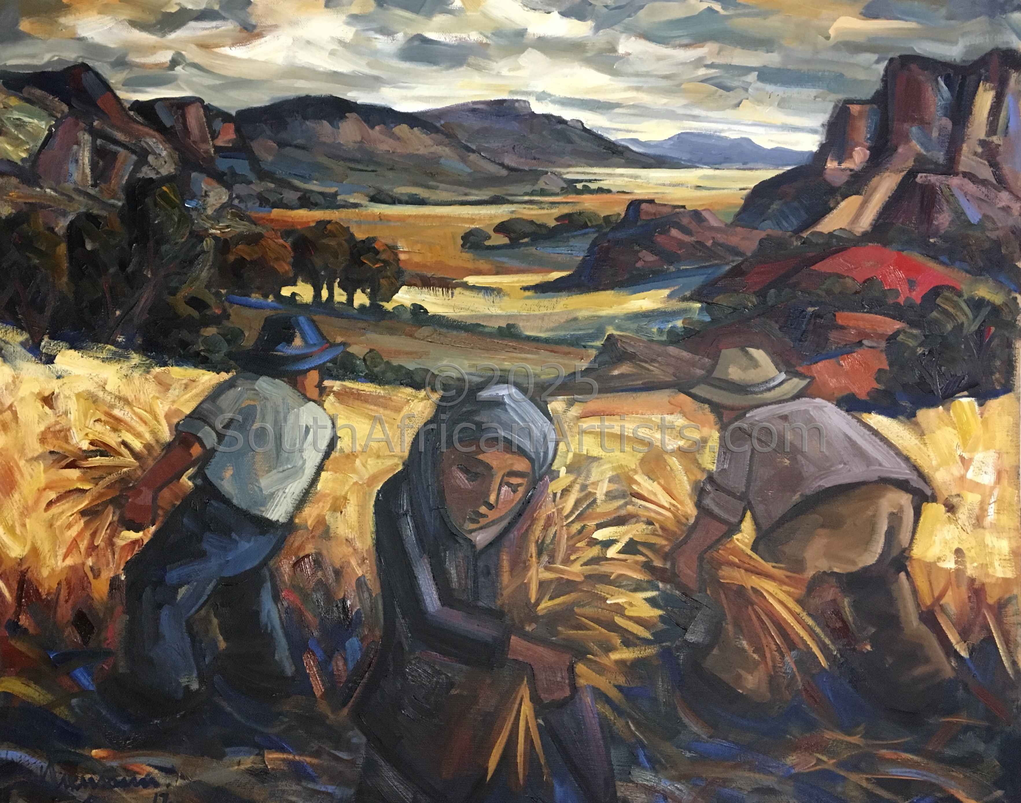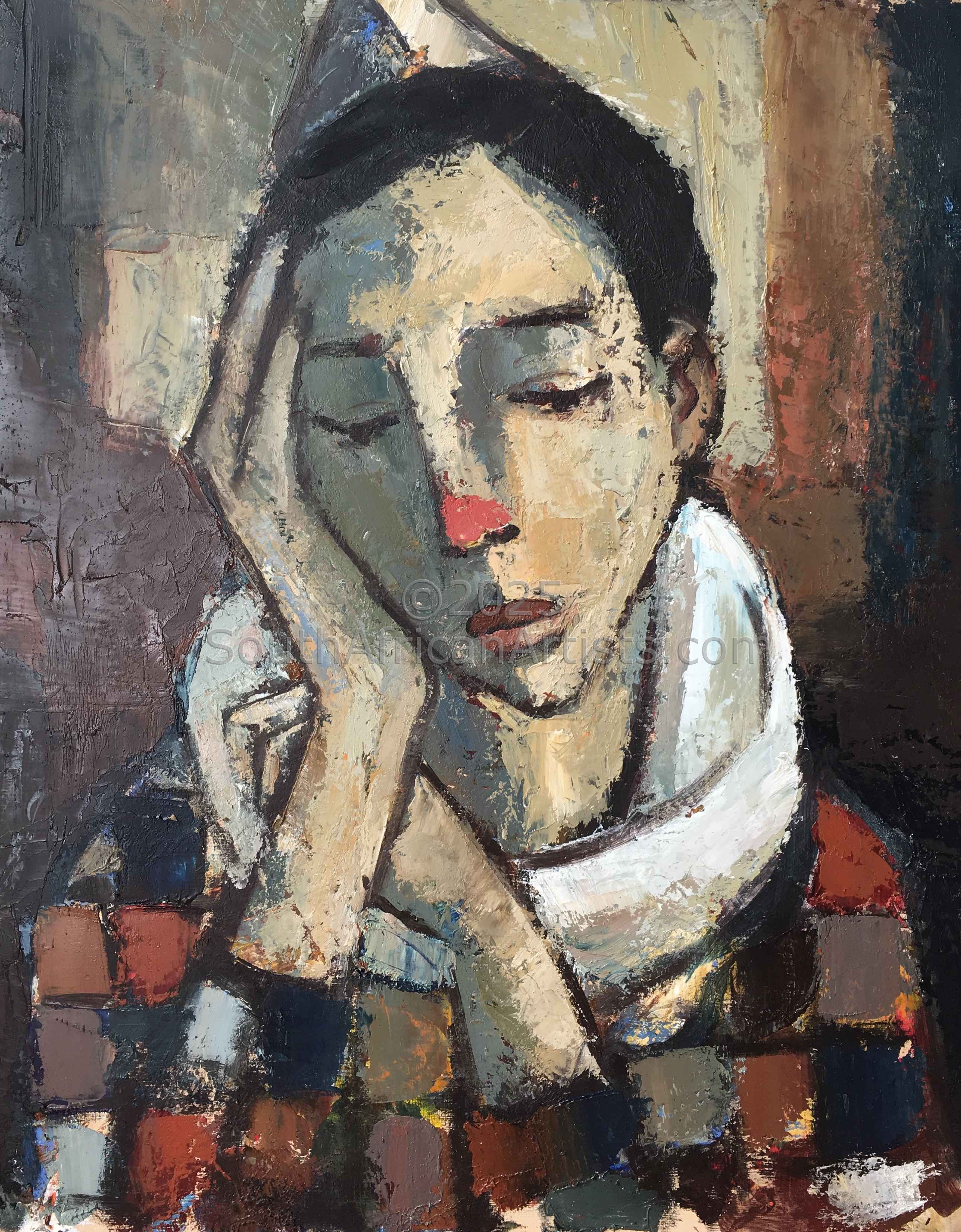 I was born in Bloemfontein in 1941, where I attended school and university, and qualified as a teacher. I taught for seventeen years while painting after hours. In 1983 I moved my family to Onrus River, a seaside hamlet on the Cape South coast favored by artists, to pursue a career as professional artist. My painting approach is strongly influenced by the character and of the subject matter I am portraying. I derives my inspiration from Fynbos pickers collecting bouquets of indigenous flowers and fisher folk sorting their catch. These outdoor scenes are depicted in strong sunlit colors - giving expression to the African sunlight and the buzz of activity. I work mainly in oils, and sometimes use pastels over the oils in mixed media on paper to effectively create a softer more subtle finish when painting interior scenes. Paintings using this technique are some of favourite works, portraying my wife and daughter - my former two favorite models, busy reading, sewing or simply relaxing.