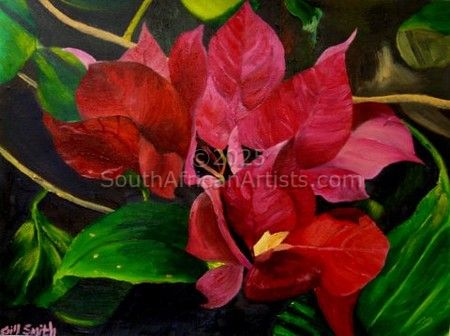 Gill Smith was born and raised in East London in the Eastern Cape. She expressed an interest in art from an early age. She took part as a subject in high school. She stopped painting for many years and has only been painting for one and a half years under the instruction of a local artist.