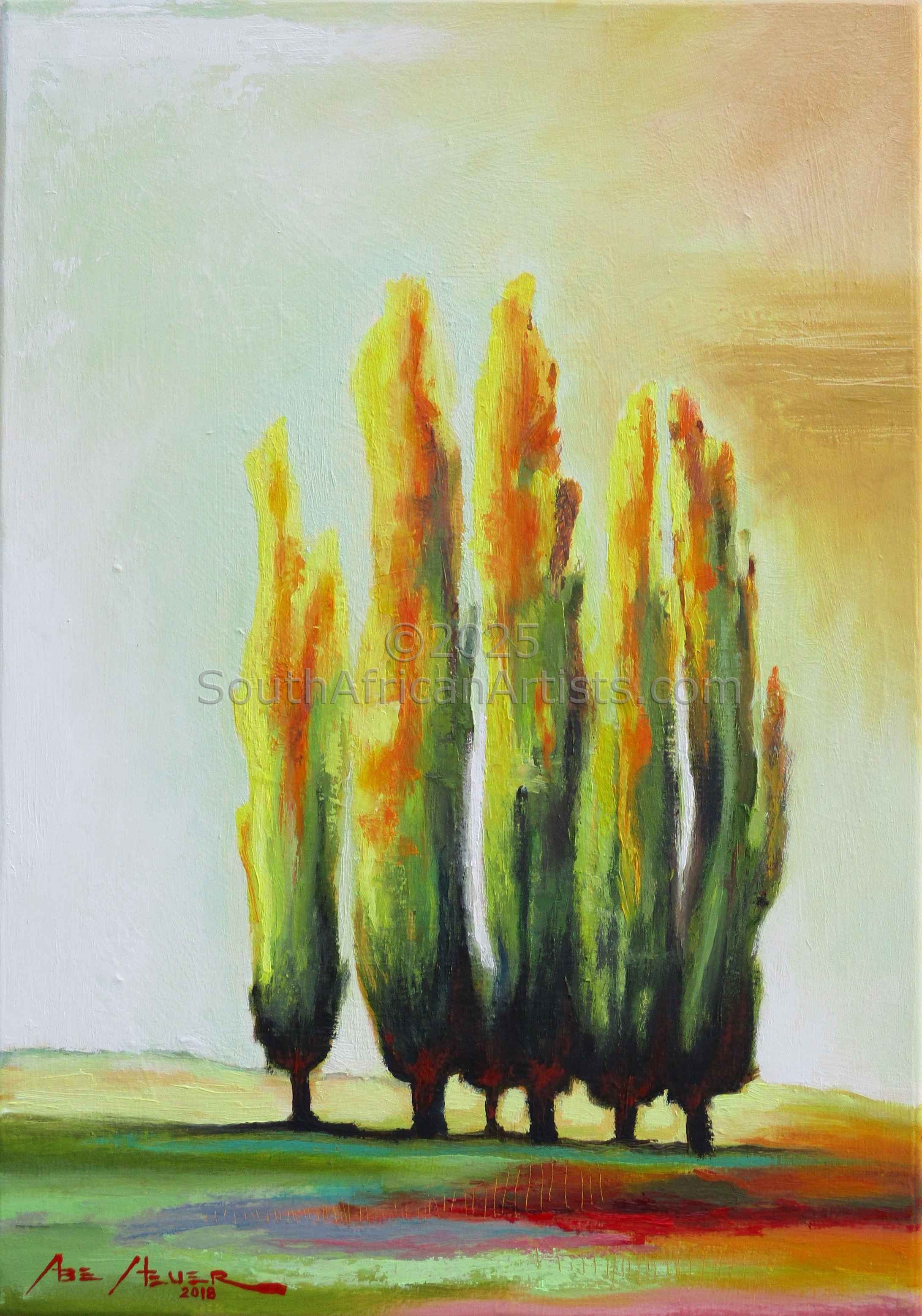 "Group of Trees in Warm Sun"
