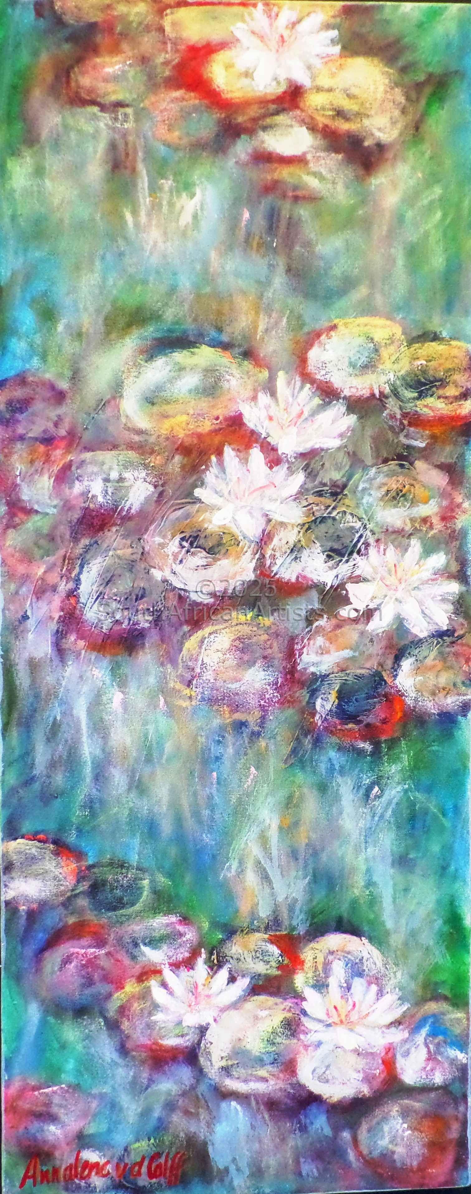 Artist, Annalene (Lientjie) van der Colff has her roots planted deeply in the natural world and weaves her colourful life's journey onto canvasses with acrylic paint and mixed media materials. Her magical divine plan unfolds into a kaleidoscope of authenticity, stemming from the Karoo town where she grew-up and unfolding in between mountain and sea in the Overberg, where her easel is for the time-being anchored. Annalene is inspired by the beauty life has to offer and focuses her hands work on the pure spiritual joy that bursts forth with vibrant colour. Forever evolving, Annalene van der Colff's artworks blossom from seed to tree, and then on to the glorious landscape that embraces her. Be the curator of what can only be described as eye-candy for the soul when you own art by Annalene. Price Range US$ 59-702 People who chose Annalene Lientjie's work also chose work by: Find other: