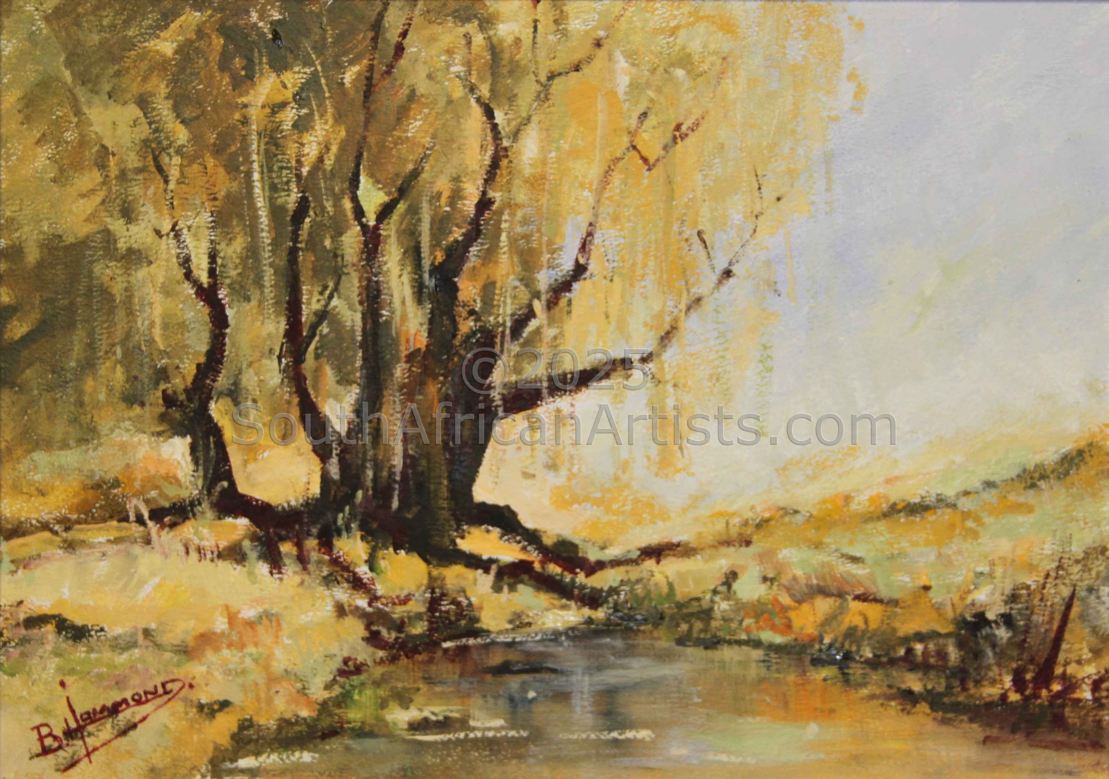 A former matriculate from Potchefstroom Boys High: Meet Brian de Villiers Hammond A versatile guy. His dad was chief surveyor at Stilfontein mine, so from the start his life took an interesting line! Brian studied farming, and in this profession, he traipsed from Viljoenskroon to Vryburg to the Eastern Cape! But even before this, his painting made a start old friend Ken McMillan helped guide him in part. Painting in oils is his preferred desire: creating landscapes, expanses, and skies on fire! Play of light at twilight and dusk expands the flow of emotion from the brush in Brian's hand. Brian feels what he paints, and his chief inspiration is the beauty and magnificence of God's creation. So take your time and browse through his art and you'll connect with the passion in Brain's very heart! Price Range US$ 70-1,001 Exhibitions Port Rex Lions Education Agricultural Diploma - Potchefstroom People who chose Brian's work also chose work by: Find other: