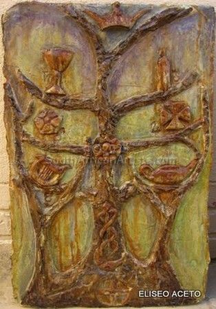 I was born and spent the first 14 years of my life in a small town in the South of Italy. In 1964 I immigrated to SA with my family and have lived here since. In 2001 I gave up my career in the chemical industry to pursue a more inclusive holistic lifestyle in which Art and Philosophy were to play a significant role. Soon thereafter I was fortunate to find an insightful patient and dedicated art teacher, Zaria de Villiers, who was able to draw out my talent and develop my own style. Initially I painted landscapes using photographs as inspiration, but realised that these were not representative of the changes taking place within me. I discovered that I could approximate concepts and ideas through the use of universal symbols and colours and so elements of surrealism crept into my work. My need to paint therefore is driven by my urge to record or maybe punctuate certain stages in my life, as well as the pleasure I derive in expressing them on canvas. I offer these works in the hope that they may serve as a catalyst, a point to ponder, for others who may be on their own path of individuation. Thank you for your interest in my work Eliseo