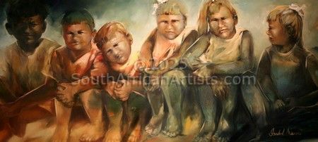 The urge to understand the complexities of life, is also encapsulated within my subject matter- children/family. One of the underlying aims of my work was to find a way to work on a visual art level, while at the same time dealing with the complexity of post-modern art-making. As I experimented with different mediums and techniques, interesting concepts started to developed...One of the most volatile and unstable phases in human development must certainly be the development of the child into an adult. Not only do a variety of physical changes take place over a period of eighteen years, but also complex changes in personality and emotional evolvement. An adult's personality becomes more fixed as he grows older, whereas a child's personality and identity are constantly in motion. This was the main reason for using a child as subject matter in many of my works.