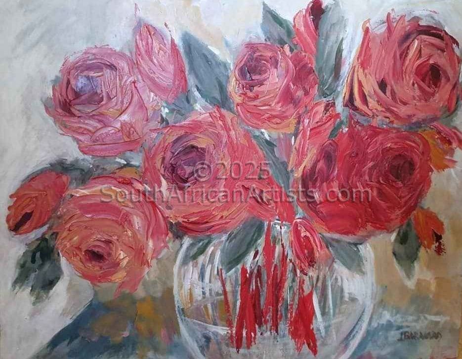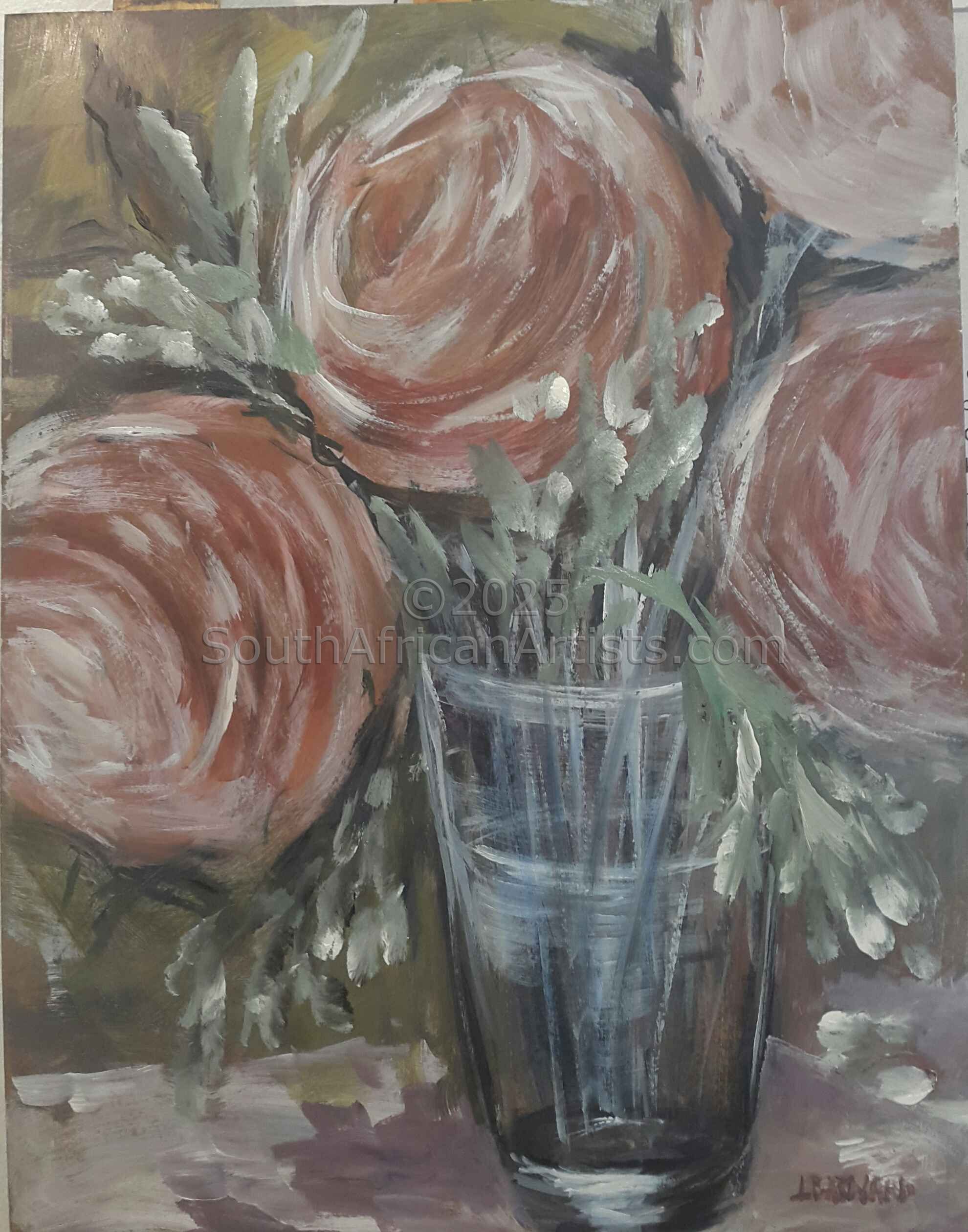 Lynette Barnard was born on the 21st day of May 1963 in Bloemfontein, the good old capital of the Free State. I matriculated in 1981 at Oranje Meisies Skool and then studied art with ceramic design as my main focus. I got married in 1985 and moved to a farm in the Rustenburg area where I worked as a full time studio potter. I lived there for 14 years and was blessed with two beautiful girls. Jarmila the eldest, born in1991 and Karsia, born in 1993. I was uprooted in 1998 and had to move to Bronkhorstspruit where me and my two girls are staying since then. The beautiful tranquility and rural feeling of this town has become part of me. Working all day with clay the stuff we are all made of captured my spirit and I always knew there was a higher calling on my life than just my ordinary walk on this earth. Surely we are to become vessels of honour for the Master's use . Circumstances brought me to the point where I started my Walk with God in 1988. Although I've been playing with paint all my life, I started to paint more seriously in 1988. I was inspired by the freedom feeling of Father Claerhouts work. I called mine Beginhoute and have been working since then in all media s - acrylic, oil, gold leaf, pastels and oil pastels. To paint is to be in another world, a world where you need to lap into a forth dimension, which I call the store house of God. His already got all the paintings I need to make in store, even the ones in the far future - enjoy the journey with me