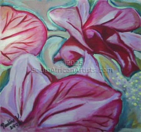 I feel that being an artist is my life's calling and I only truly feel fulfilled when I am painting.I enjoy painting to music and tend to get lost in the emotional expressiveness of creating.I find my inspiration in anything that reminds me of God and His love.Be it a sunset,a butterfly,flowers or dappled light dancing on a tree.Currently I find inspiration in the colour and power of ocean waves.And am loving this new direction that my work is taking. Price Range US$ 52-519 Exhibitions I am a member of the Highway Art group and have participated in group exhibitions.I have also participated in the Botanic Gardens Art in the Garden.I entered the Emirates Skywards Art competition in 2013.My work has found it's way into peoples homes in the UK,Australia and in South Africa. Education self taught People who chose Pauline's work also chose work by: Find other: