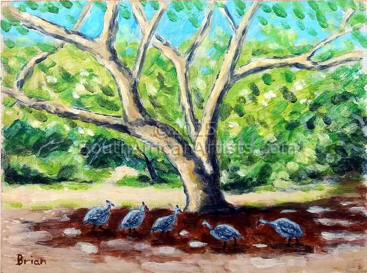 Guinea Fowl Under a Tree