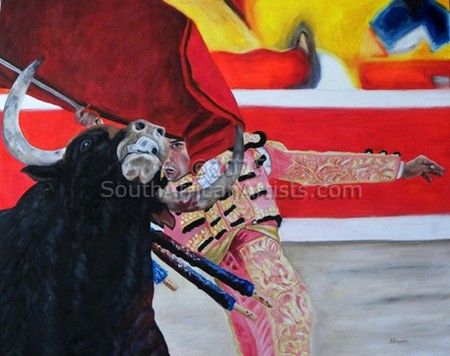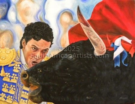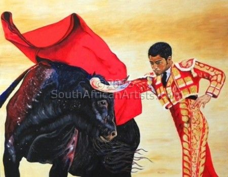 Matador and bull eye to eye