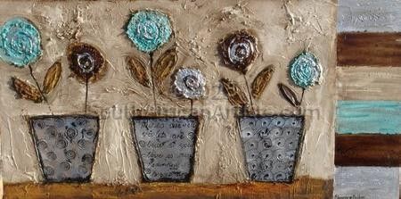 Copper Green & Silver Flowerpots