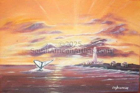 Whale tailing in sunrise, Seal Point Lighthouse Cape St. Francis