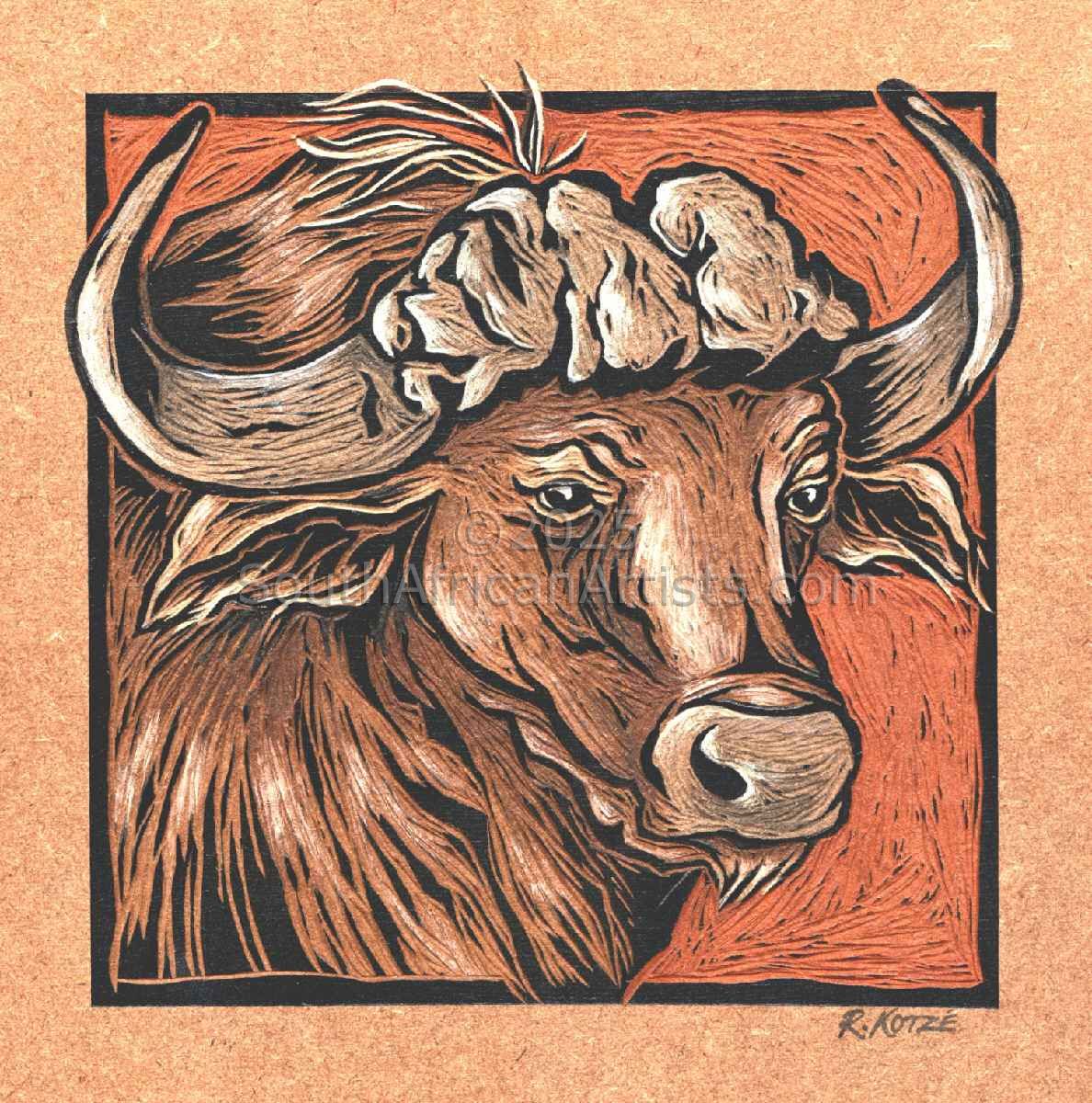Buffalo Coloured & Incised Woodcut Block 1/1