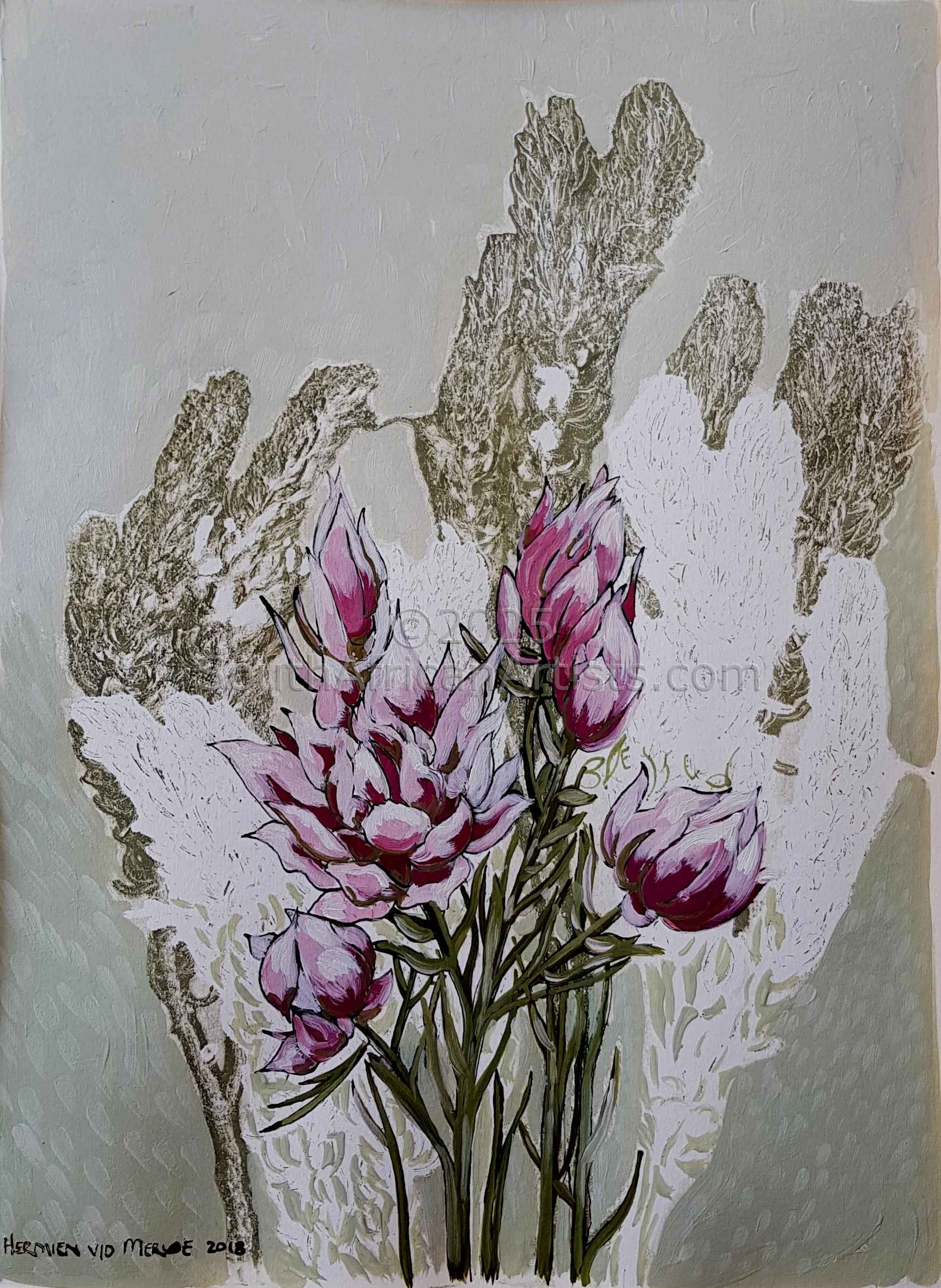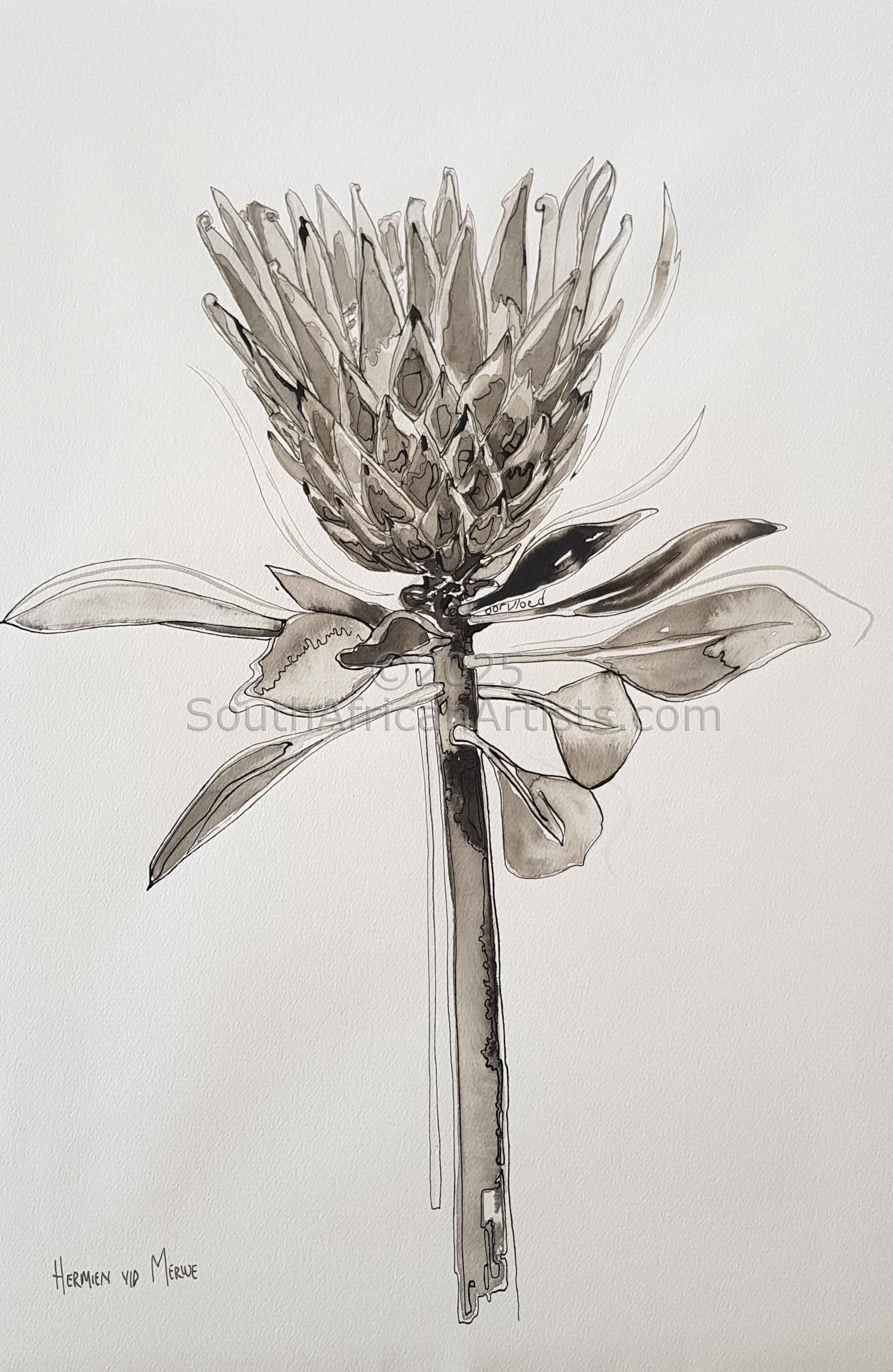 Fynbos Ink Wash, 'Abundance', Protea
