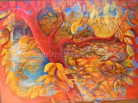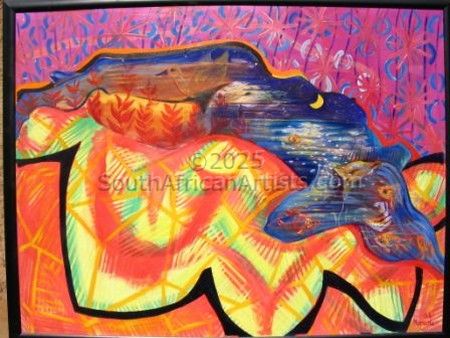 Marcella de Boom was a South African artist who preferred media was acrylic and Watercolours. She grew up in Pretoria and graduated with a BA Fine Arts from the University of Pretoria. Her works have been exhibited in countless solo and group exhibitions in South Africa, Namibia, Germany and Canada. She spent her time in Cullinan, where she lived in a cobhouse-cum-art gallery that she herself had built and that took a year to finish.