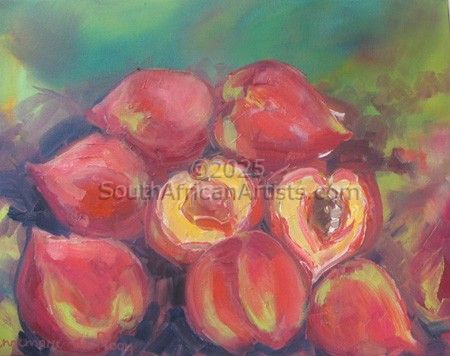 Studied HED Domestic Science at Potchefstroom University during which time she was introduced to the arts. Started painting in 1995 took art lessons over a period of 4 years from various artists in Mpumalanga namely : Melite Grobler, Belinda Wessels, Carel Maree and Boe v Zyl. Prefers working in oil as a medium.Views work as realistic, romantic and at times impressionistic and has a passion for romantic scenes with figures, flowers and fruit