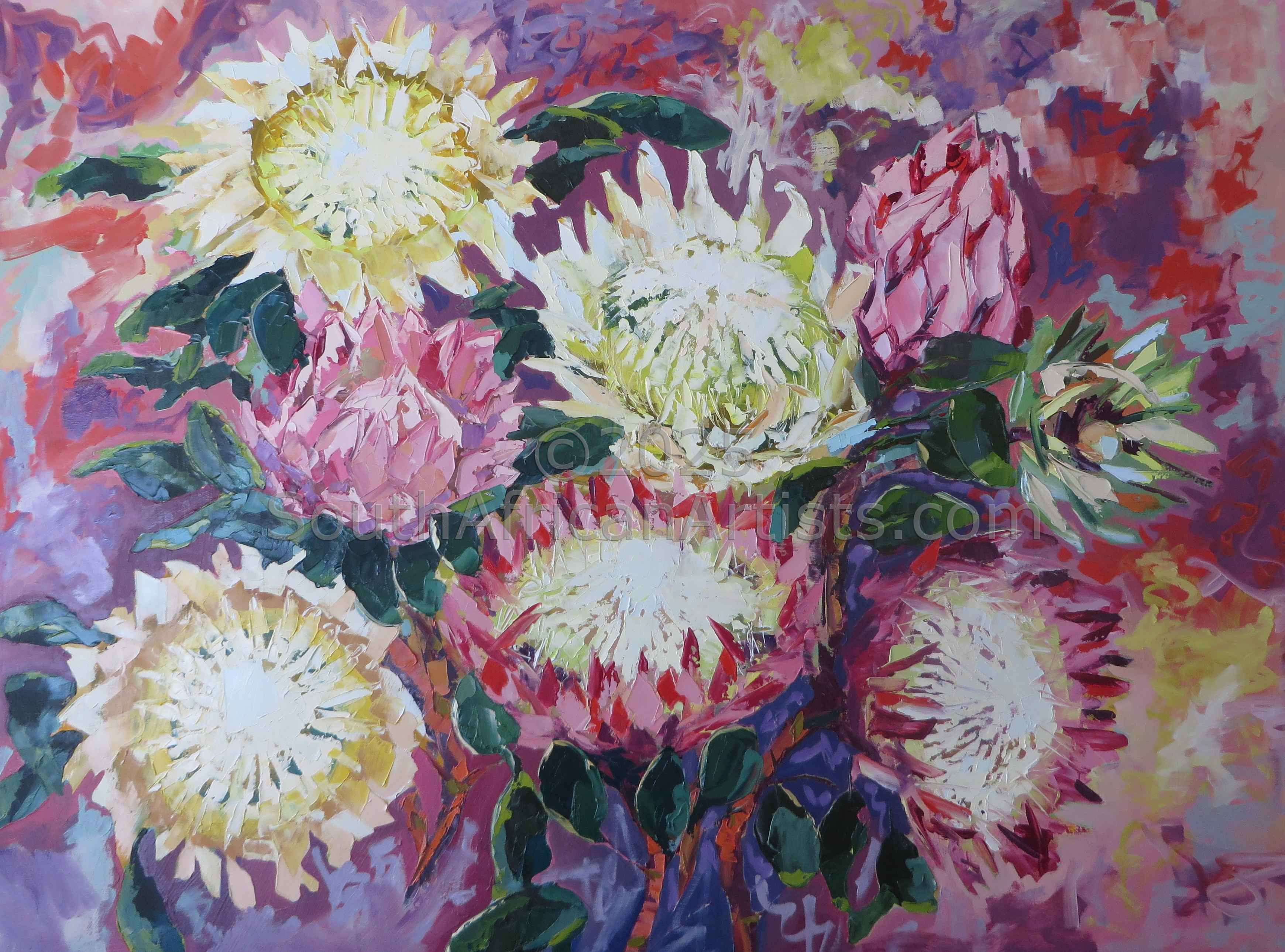 Studied HED Domestic Science at Potchefstroom University during which time she was introduced to the arts. Started painting in 1995 took art lessons over a period of 4 years from various artists in Mpumalanga namely : Melite Grobler, Belinda Wessels, Carel Maree and Boe v Zyl. Prefers working in oil as a medium.Views work as realistic, romantic and at times impressionistic and has a passion for romantic scenes with figures, flowers and fruit Price Range US$ 61-3,010 Exhibitions Took part in several successful solo and group exhibitions in Mpumalanga (Bethal and Secunda) .At present Bellini Gallery in Hermanus has the biggest collection of my work. Kanonkop wine estate exhibit some of my works at their gallery.Gallery 91 in Somerset West also exhibit some of my work. Education HED Domestic Science People who chose Annemarie's work also chose work by: Find other: