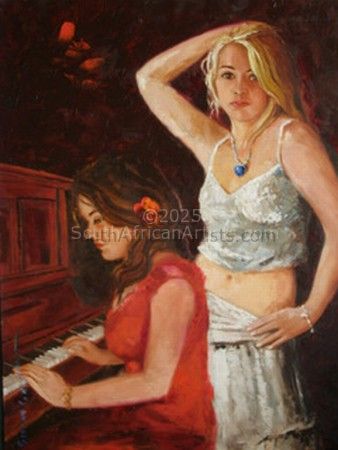 when you sometimes become lonely or long for memories gone by, you will find satisfaction in the art of Susan Greyling. The paintings of Susan, educated as an Art teacher, depicts wowen and children in warm glowing colours and rich textures. Her lascivious bar girls made her famous and once seen, also made them famous. A sense of warmth and a feeling of nostalgia is part and parcel of her figures. The fullness of her creations and the simplicity of her art culminates in balanced beauty seldom to be found anywhere else. Price Range US$ 504-1,511 Exhibitions 1997 gallery riette, 1999 pretoria, 2000 african rennausance statetheatre pretoria, 2001 Grabesrust guesthouse, 2007 new signatures aliceart ruimsig,2008 Gecko Guesthouse Standerton, 2009 solo exibition aliceart Ruimsig Education art teacher People who chose Susan's work also chose work by: Find other:
