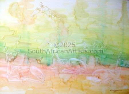 Ghosts of Africa - Lost visions of our natural world. This style is a perfect way for me to express how fragile our wild life is. It shows that should we not mend our destructive ways, all that will be left of these magnificent animals will be a faded memory, thus the ghost like appearance of the subjects. Throughout my life I have painted many pictures. In that time I never really developed my own style or a passion for a particular topic. Then one day I found the need to express my fears for the future of our wildlife. It began with three buck lost into a colourful back ground. In most art, the animals are depicted in the foreground but, as I fear, they are no longer there. My inspiration developed from there, experimenting with colour and blending techniques. This led to a series of paintings of which I am proud and believe convey my sad message in a serene but powerful way.