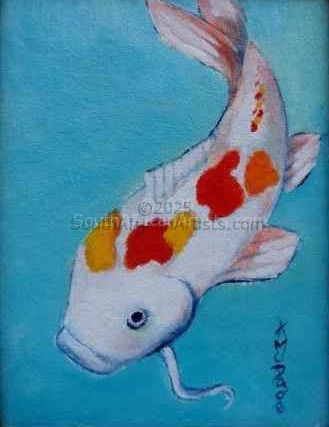 I live on the Bluff in Durban and due to the Bluff's elevation, it has the most spectacular sea views and this is the inspiration for all my seascapes. Durban is sub-tropical and has a lucious growth of beautiful flowering shrubs and trees. One does not have to go far, to be inspired to paint. I enjoy design, colour and texture to create an effect. Sometimes I paint the same flower in three different sizes, to be exhibited together. Ultimately I am a "design" artist, if that makes any sense.