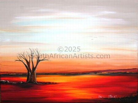 Her long brush strokes mark her as an expressionist therefore her work can be summed up by the following quote from Kasimer Edschmid "The Expressionist does not look, he sees" The expressionist MIQRA ORMANDE MILES or better known as Miq Miles was born on the 8th of June 1957 in Pietersburg, now known as Polokwane in the Northern Province of South Africa. Her work is sought after by discerning art connoisseurs. She is internationally known and has sold paintings to Galleries and buyers in Europe, Cyprus,Scotland,Ireland, Portugal,Spain, Turkey, Australasia, China, England and the Americas. She has painted since a very early age; her first painting sold at the age 10; a multi media painting of a bunch of Sweat Pea flowers in her well known bright colors; a well known Expressionistic artist that works in a variety of media. Expressionism as artistic style is a style in which the artist seeks to depict not objective reality but rather the subjective emotions and responses that objects and events arouse in them. She accomplishes her aim through distortion, exaggeration, primitivism, and fantasy and through the vivid, jarring, violent, or dynamic application of formal elements such as color, without loosing the aesthetic appeal of her subject. In a broader sense Expressionism is one of the main currents of modern art Miq has had 80 Solo Exhibitions since 1971. Her first work went on exhibition at the age of 14 and is still shown as part of the Exhibition of the Pietersburg High Art Exhibition. She currently lives in Polokwane and has ongoing exhibitions world wide. Please consult this web site for more information concerning upcoming events.