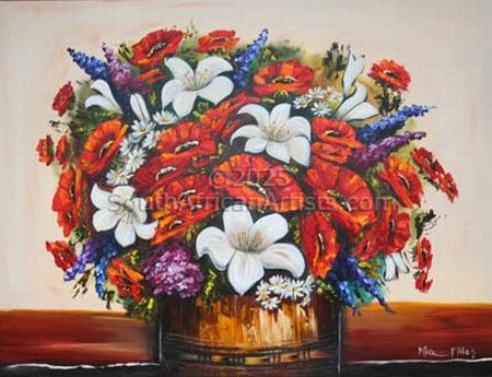 Her long brush strokes mark her as an expressionist therefore her work can be summed up by the following quote from Kasimer Edschmid "The Expressionist does not look, he sees" The expressionist MIQRA ORMANDE MILES or better known as Miq Miles was born on the 8th of June 1957 in Pietersburg, now known as Polokwane in the Northern Province of South Africa. Her work is sought after by discerning art connoisseurs. She is internationally known and has sold paintings to Galleries and buyers in Europe, Cyprus,Scotland,Ireland, Portugal,Spain, Turkey, Australasia, China, England and the Americas. She has painted since a very early age; her first painting sold at the age 10; a multi media painting of a bunch of Sweat Pea flowers in her well known bright colors; a well known Expressionistic artist that works in a variety of media. Expressionism as artistic style is a style in which the artist seeks to depict not objective reality but rather the subjective emotions and responses that objects and events arouse in them. She accomplishes her aim through distortion, exaggeration, primitivism, and fantasy and through the vivid, jarring, violent, or dynamic application of formal elements such as color, without loosing the aesthetic appeal of her subject. In a broader sense Expressionism is one of the main currents of modern art Miq has had 80 Solo Exhibitions since 1971. Her first work went on exhibition at the age of 14 and is still shown as part of the Exhibition of the Pietersburg High Art Exhibition. She currently lives in Polokwane and has ongoing exhibitions world wide. Please consult this web site for more information concerning upcoming events.