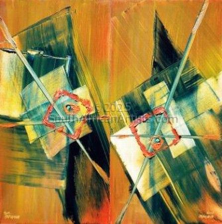 I see each abstract work as an opportunity to engage in some "visual mathematics". (I enjoy making pairs of abstracts that fit together.) I simply decide on the base colour and then start sculpting the shapes and lines to a degree of personal "contentment or perfection". My abstract works fall indeed into the abstract expressionist category. If the viewer sees very deep significance in any of my works it is a bonus, but personally I feel my works celebrate the creative moment and the colourful possibilities that life affords us all.