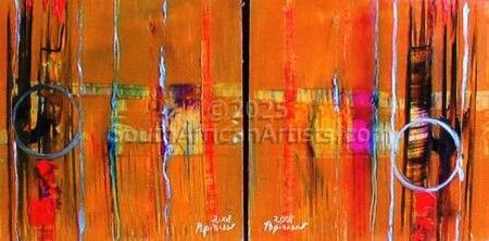 I see each abstract work as an opportunity to engage in some "visual mathematics". (I enjoy making pairs of abstracts that fit together.) I simply decide on the base colour and then start sculpting the shapes and lines to a degree of personal "contentment or perfection". My abstract works fall indeed into the abstract expressionist category. If the viewer sees very deep significance in any of my works it is a bonus, but personally I feel my works celebrate the creative moment and the colourful possibilities that life affords us all.