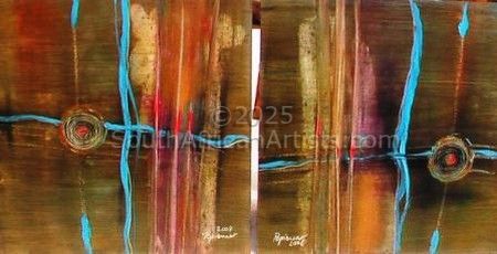 I have exhibited at the Oudtshoorn Arts festival in 1997. Kunshuis Clanwilliam has been displaying my work since 1997, Tugwell Gallery Hartebeespoortdam sold some of my works and I participated in a few group exhibitions in and around Pretoria. A highlight was when I exported three large works to Korea. In May 2014 I had my first exhibition in Jeddah (Saudi Arabia) entitled: Journey with Jeddah I and in February 2015 I had another exhibition Journey with Jeddah II in Jedday at the same gallery space.