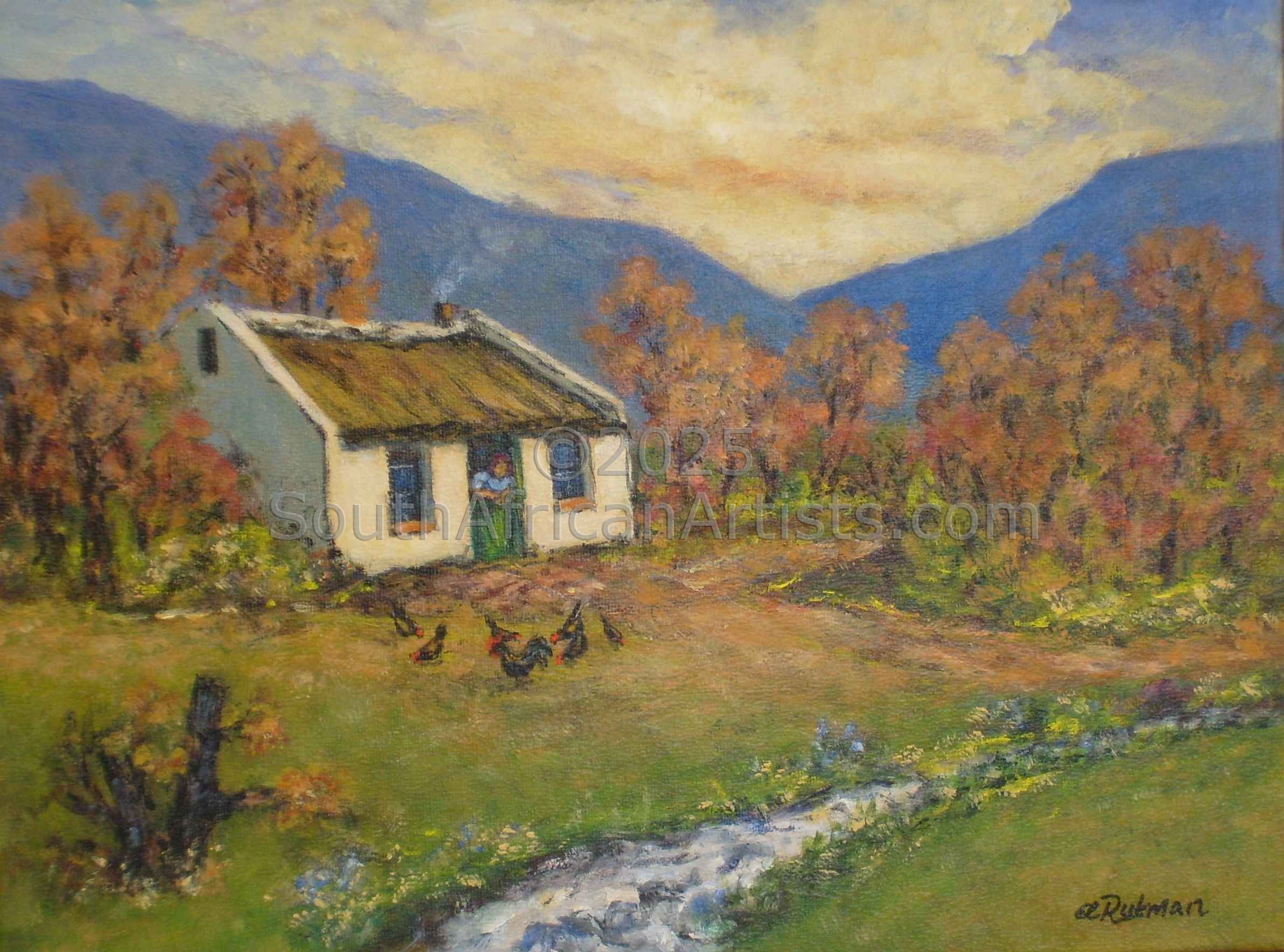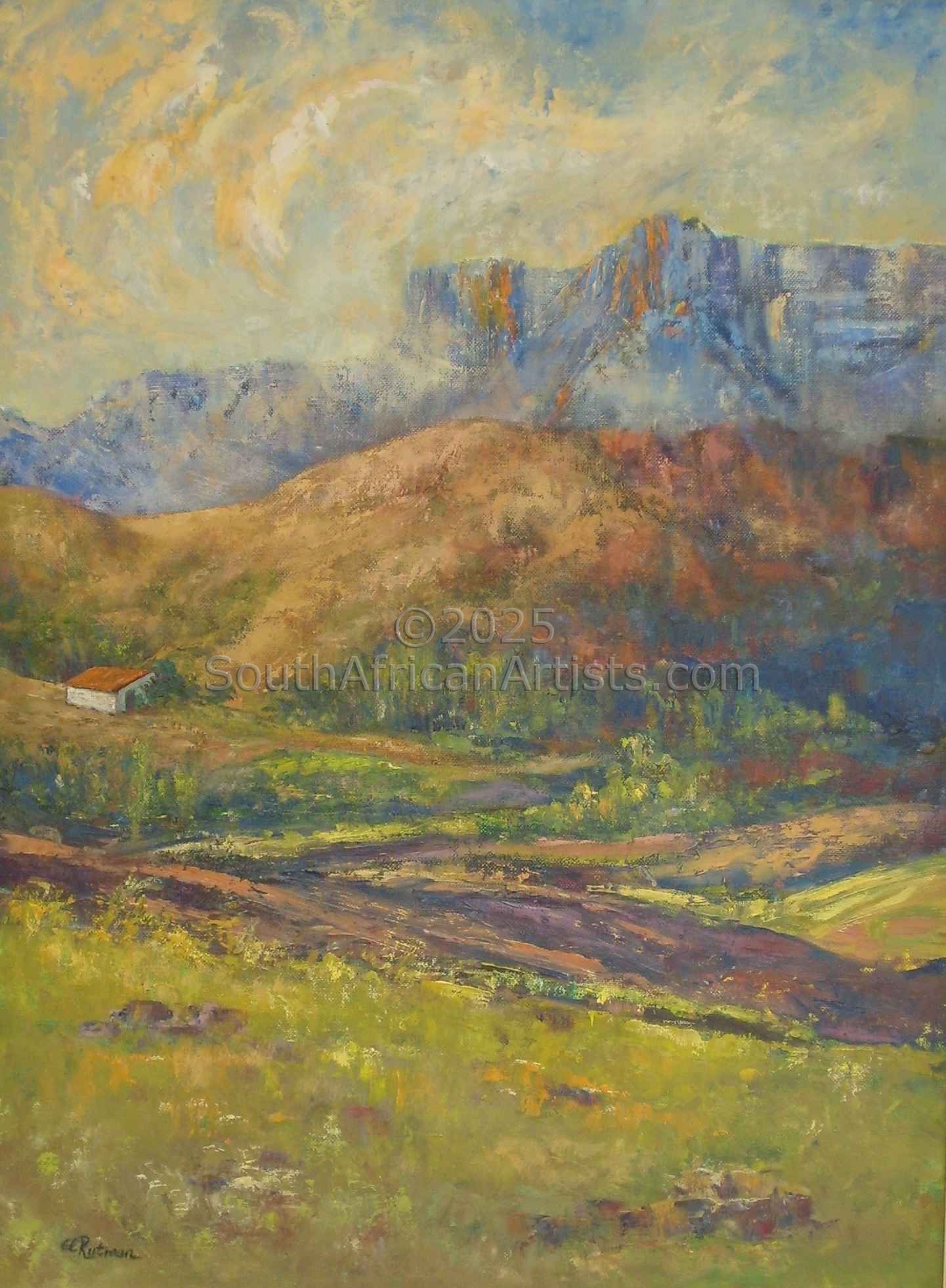 Ella came from Germany to South Africa as a child in 1951 to live with relatives. She received her basic education in Johannesburg. In the early 80's Ella started taking some art lessons on and off. She exhibited on occasions with the 'Artists under the Sun' at the Zoo Lake, selling some of her landscapes and still life paintings. Art had still remained a hobby during the 90's, running a B & B Guest House in Honeydew, plus a part-time accounting job. The Pool House Gallery, where guests enjoyed their breakfasts, had given exposure to her paintings. This had frequently lead to interesting commissions requested by guests. During 2003, after 41 years, Ella and her family relocated to the beautiful Hartbeespoort valley to retire. Ella's favourite subjects are genuine well-known SA landscapes of the Drakensberg, Cape, Pilgrimsrest, specific waterfalls, marine life, interesting rock formations of the Cedarberg and Cango caves. A question frequently asked: "How do you describe your art?" Ella's answer: "I prefer to leave the description to the viewer. However, my sincere aim is essentially, to capture any kind of beauty, which may touch the viewers emotions in some or other way. May I succeed!