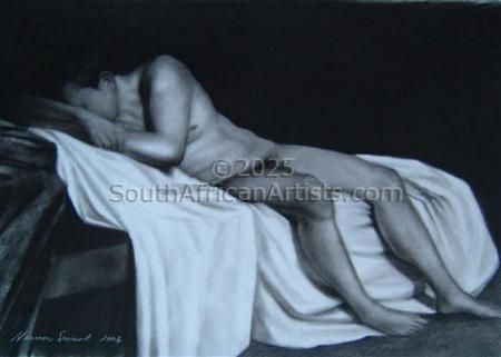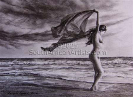 Lives and works in Stellenbosch near Cape Town. His unique realist style features evocative nudes and dark, moody landscapes. His work is included in numerous public and private collections.