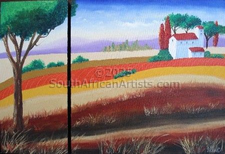 She works in semi-abstract to abstract style in various media including oil and acrylic on canvas. Some of her favourite subjects are African wild life, sea- and landscapes, animals, birds, wild flowers and buildings. She often paints from photographs but does not simply produce copies but adds her own personal touch. Some of her pieces are purely emotional expressions of colour and warmth. She loves vibrant colours and to make her paintings come alive. She is always open to new techniques and styles that can expand her creative ability.