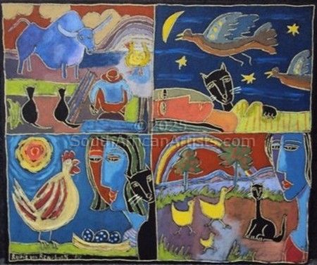 I am a full-time artist living in Cape Town. My art is a blend of fantasy, playfulness and simplicity. I am an expressionist at heart and search for expressiveness by means of exaggeration and distortion of line and colour. The purpose of my art is to reach a certain form: one does not necessarily look for an elegant effect, but for a general shape to satisfy the inner impulse. Over my 23 years as an artist I have experimented with different techniques and styles - from pop and pure abstract art to heavily textured expressionistic work.