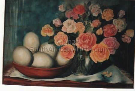 "Roses and Ostrich Egg Still Life"