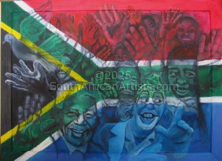 This work is unframed Price US$ 240 SOLD About "10 year democracy" This painting was painted for a theme based exhibition "10 years democracy" for the Margate Art Museum |