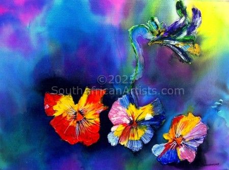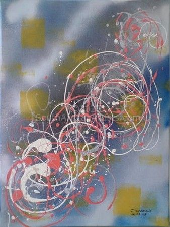 Abstraction indicates a departure from reality, with the need to produce and be part of something other than the [0x1]real world[0x1]. Whilst immersed in the moment of art, the artist is often unaware of what he or she is creating and exploring. Emotions and uncertainties- all play out on canvas. Her paintings are a natural growth out of a need which she expressed on canvas.