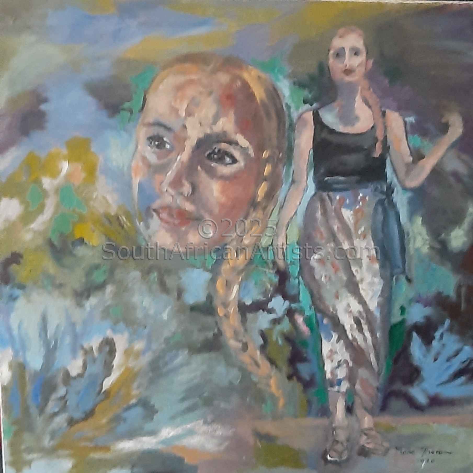 South African Marie Theron (b. 1944) was trained as an Art Teacher. She has held solo exhibitions both locally and overseas and has participated in exclusive group exhibitions. Investors in her oil and acrylic works range from foreign embassies, corporate offices, guesthouses, libraries, hospitals and international private collectors. Her work has sold in Australia, Britain, Canada, Croatia, Ireland, Hungary, the Netherlands, Germany, Austria and the USA (more than 30 paintings in America) She was commissioned by the Ass of Arts Pretoria, the Croatian Embassy and Academia Cravatica in Zagreb to submit a painting "Sister Power" for "The Challenge of the Tie", a world-touring permanent exhibition which toured Pretoria, Johannesburg, Brussels, Prague and Brazilia in 2005 and further around the globe in 2006.