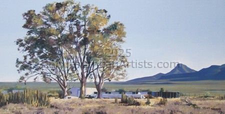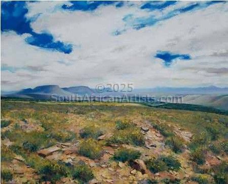 My life experience has been very varied. After 2 years at the Johannesburg School of Art (1978 & 1979) boredom set in and I spent six months working in the display department of a clothing chain. After that there was a brief foray into the world of advertising, which did not suit me at all, after which I successfully ( and lucratively ) free-lanced for 9 years. There was another brief period once more in a display department, but corporate life was not for me. In 1991 I moved to Graaff-Reinet and with my partner set up a business which was intended to not only generate income for us, but also to create jobs. After 8 hard years, during which we learned a lot but also lost a lot of money, we closed it down. This was followed by 5 years during which we owned and ran a very successful Bed & Breakfast and Restaurant which was sold in 2004. Since then I have had the freedom finally to devote time to my various creative interests. September 2004 saw the exhibition Hidden Colour which was concerned with Karoo Landscapes. This was followed by Life On Mars in 2005, a complete departure from the work of the previous year. I have also been writing articles for magazines and newspapers, drawing a cartoon strip, and doing logos and illustrations for various products.
