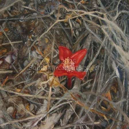 I am living on a farm in the Sandveld between Velddrif and Piketberg. I am inspired by my surroundings and the wealth of indigenous wildflowers of the area. The detailed, sensitive (almost impressionistic) paintings stems from a fusion of my scientific background and creative spirit. The images transcend the mere physical appearance of the subject and become visual poetry about Creation.