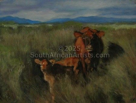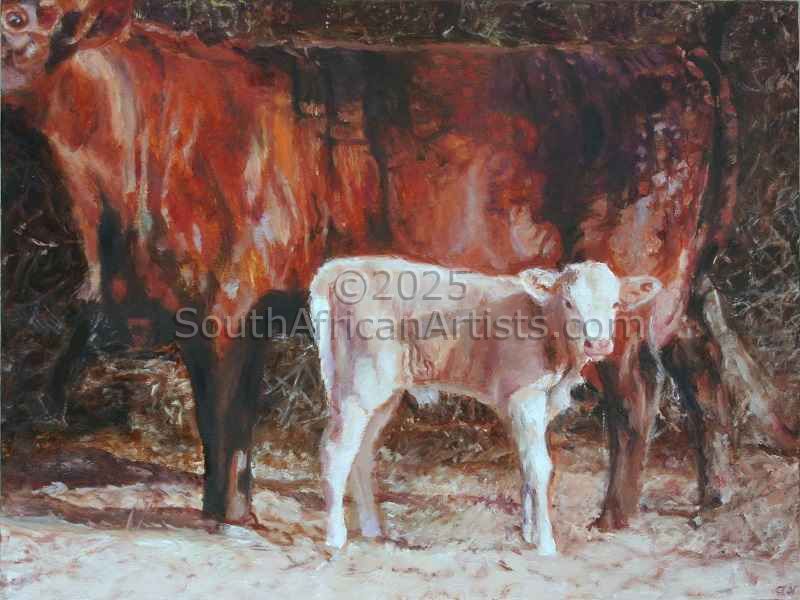 "Cow and Calf in Sandveld Landscape"