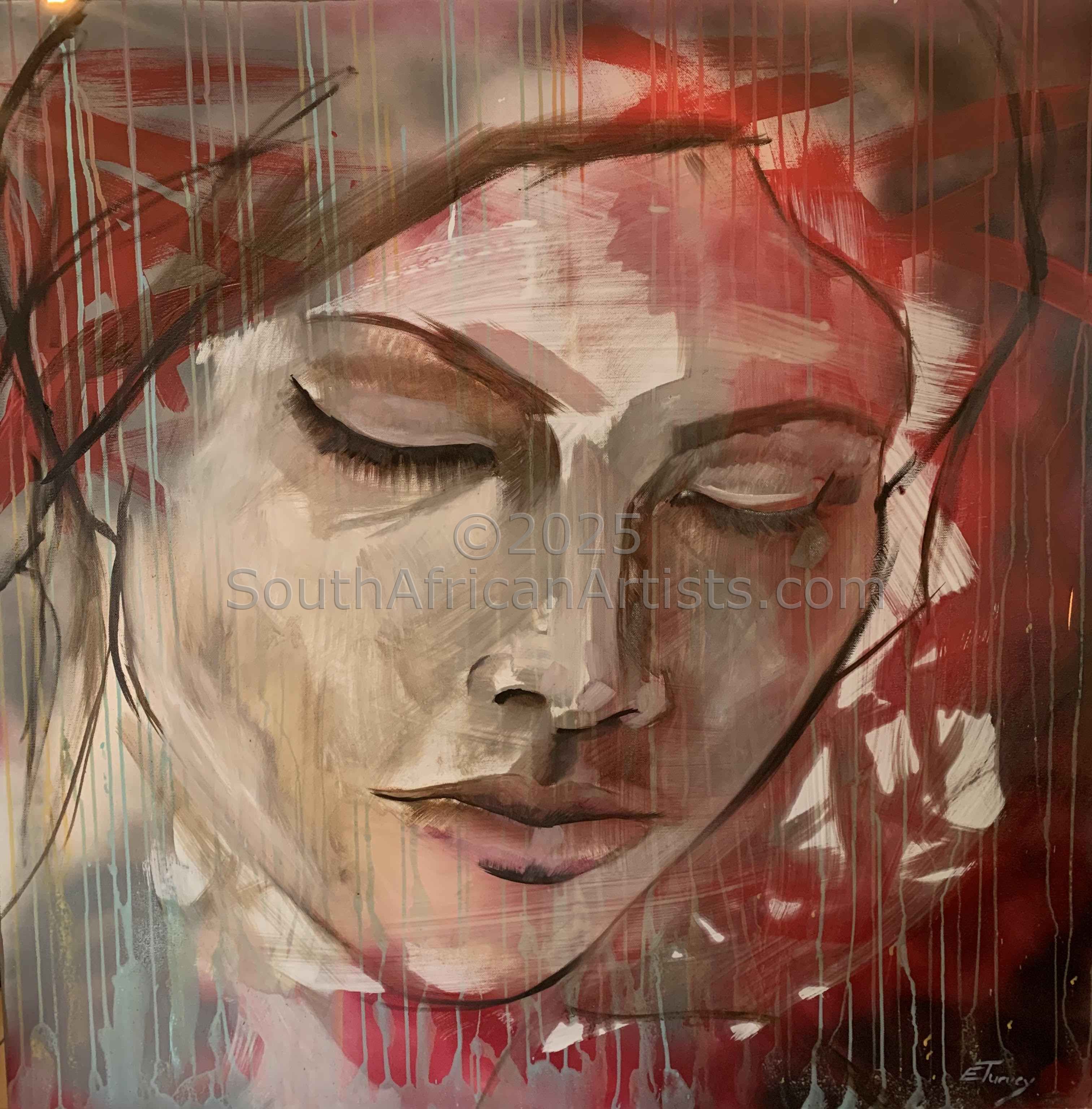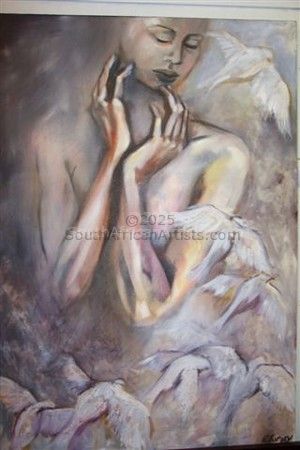 From as young as I can remember, I have always been enthralled by art. The array of different colours would captivate my mind, and to watch a picture come to life with the stroke of paintbrush made my young heart soar. I would draw, sketch, and paint with anything I could get my small hands on, and I would memorize all art techniques that I came across with a frenzied passion. Thus, I discovered my artistic talent at a young age. I was born in the Limpopo Province in 1982, in the simple agricultural town of Modimolle. Growing up I struggled to fit in amongst my peers in the farming community. By high school I was frustrated, I knew I had the ability to expand upon my artistic skills, but the lack of art programs in the area made me feel stunted. I voiced my frustrations to my parents and they heard my pleas. They sent me to Pro Arte Alphen Park School in Pretoria, South-Africa, an opportunity that changed my life. It was here that I bloomed into the artist I am today. Once done with school I studied fine art at the University of Pretoria, and I then went on to teach art at Optima College for the Visually Impaired. Here I learned about art from a whole new perspective. I had to learn how to explain colour through texture, how to form pictures through touch, and in many ways my students taught me. This experience influenced my work greatly. Thus the eyes in my work became a focal point and many textures became a staple. Art helps me to communicate, you might say it is my language. It allows me to express my thoughts and emotions visually. Flight, escapism, the conscience and life itself are some of the topics I love to work with. I don't use any live models or photos as references when I paint my portraits, thus my figures are not always anatomically correct. All the people I create on canvas are from my dreams or memories. The people in my portraits do not exist until I start painting. They are a direct expression of emotion, and each one is completely unique. I call myself an expressionist and an impressionist. I want to, have to, express myself on canvas, otherwise I feel I'd go mad. At the same time I want to leave a lasting impression on the viewer. I want them to look deep inside themselves and connect to my work in their own special way, making my dreams and memories their own. I want them to understand, through my art, what I cannot express in words. I've worked for art distributors from the age of 18 and my work has been sold to art lovers in countries such as Australia, Singapore, Switzerland, Russia, Italy, South-Africa and many more. In 2017 I was chosen to participate in a TV show called Kunsvlyt on kykNET. I was one of ten participants chosen from 220 entries from all over the country. Participants were given a new challenge weekly to create an art project from scratch with anything from clay, paper, and wood, to plastic, mosaic, tiles, rope, etc. I have also had the pleasure of holding art classes for the well known South-African musician and artist, Jan Blohm. In an interview with "Volksblad Newspaper" I was described as fearless in my use of colour. When asked if the birds in my paintings are religious symbols: "No, they are more a memory of something I saw in my past but also a symbol of where I am in the present, content but free at the same time."