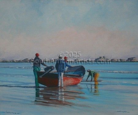 Hi, I am an artist who loves the sea, I live in a little coastal village called Jacobs bay on the West Coast of South Africa not far from the Fishermen's Village "Paternoster" which is the place of my inspiration and exhibitions ...The local restaurants there also display many of my work. My studio is always open for the public or other artists that need inspiration.. my other interest is music and I play acoustic guitar and compose my owns lyrics and words..