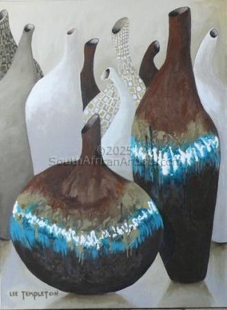 Lee says, During 2008 I sold my last commercial business, a factory manufacturing and printing commercial signage. My staff designed, printed, manufactured, steel and aluminium structures for indoor and outdoor advertisement billboards. So after 27 years of managing the turbulence of entrepreneurship and the challenges of widowhood twice, I decided to carry a paint palette instead of a briefcase and sign my signature with a paintbrush instead of a black ink pen. I have accepted Gods gift of joy, to live a life filled with appreciation and contentment. By June of 2009, Lee had developed her individual style of painting. Her canvases are large with a sense of spaciousness. The topics are simplistic in nature painted in a contemporary style. Lee describes her style of artwork as simplistic-contemporary. From 18 September 1992 each painting is numbered and logged. By August 2012 Lee had painted 800 canvases. Lee has kept a few for her home, gifted a few to family and friends and the balance has been sold. Recently remarried, Lee s artworks are now signed Lee Templeton.