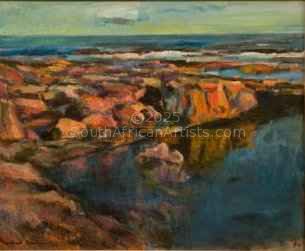 (1921-2008) Herbert Coetzee worked within the popular Cape tradition of derivative impressionism. His paintings are descriptively rendered with loose brushwork and a colourful palette. He was interested in technical effects and experimented with varying methods of portraying his subjects. He was appointed Lecturer in Fine Art School in 1968. He completed commissioned murals at Wellington Training College, Wynberg Military Camp and for Safmarine vessels - 'SA Hex River" and 'SA Alphen'. He studied under Maurice van Essche 1959-60: awarded a Belgian bursary to study at Opsomer, Antwerp.