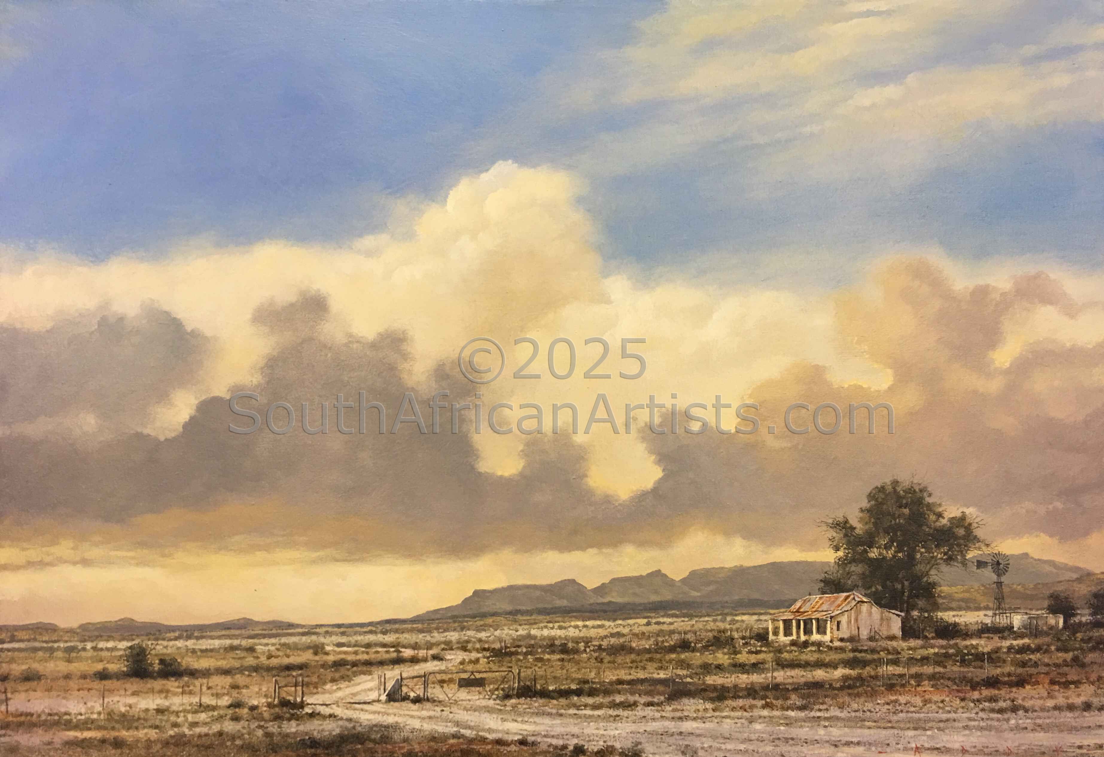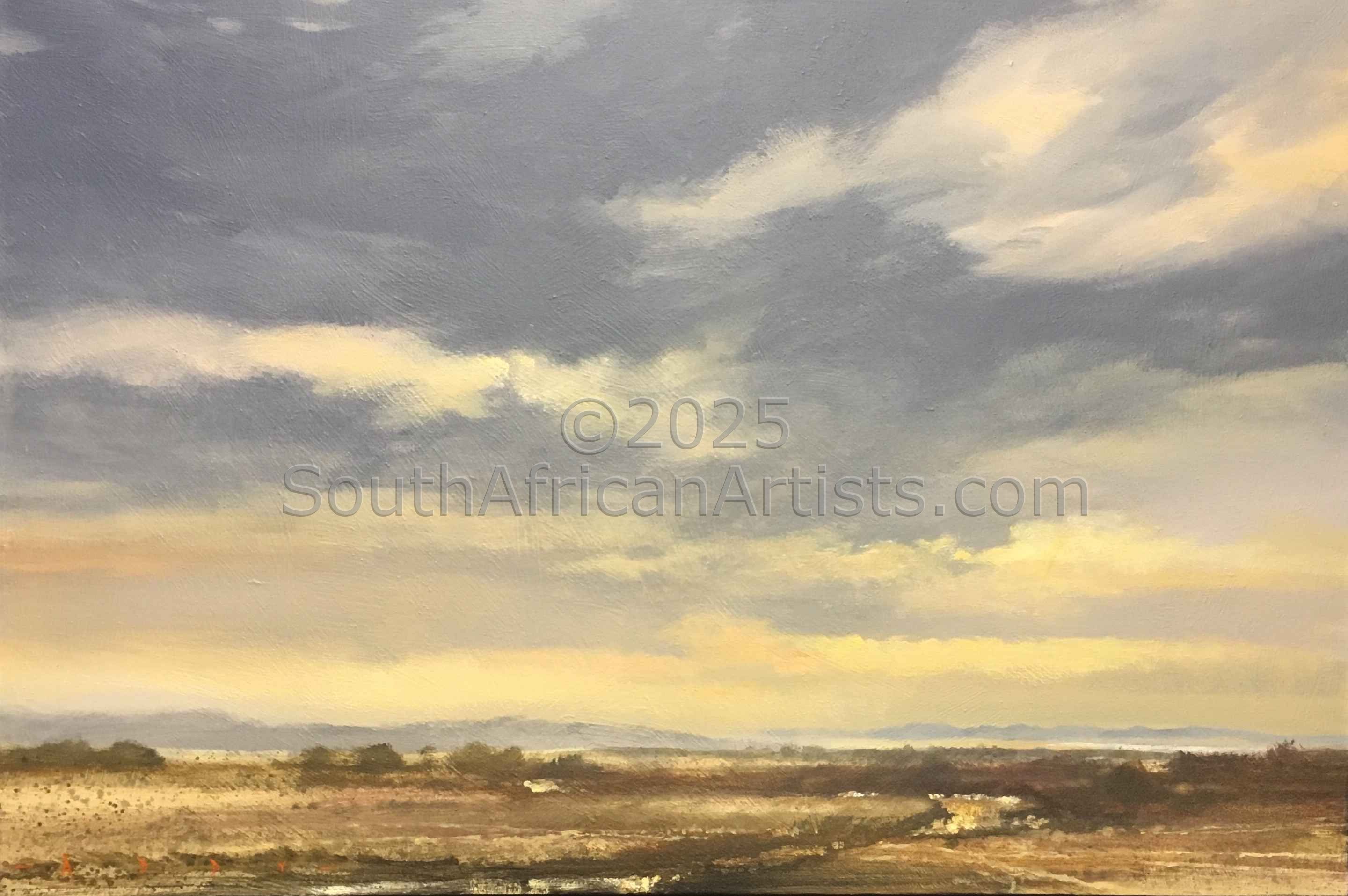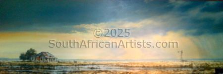 Rendered with a passion and technical facility reminiscent of the Old Masters, Simon's landscapes evoke the spirit of the Eastern Highlands' bleached winter grasses, veldfires, and old stone houses under brooding skies. His travels in search of soulful scenery produce moody studies of wintry Natal Midlands river-courses and wetlands, and deserted Northern Cape farmhouses. Price Range US$ 210-4,717 Exhibitions GROUP EXHIBITIONS - Various, international & National People who chose Simon's work also chose work by: Find other: