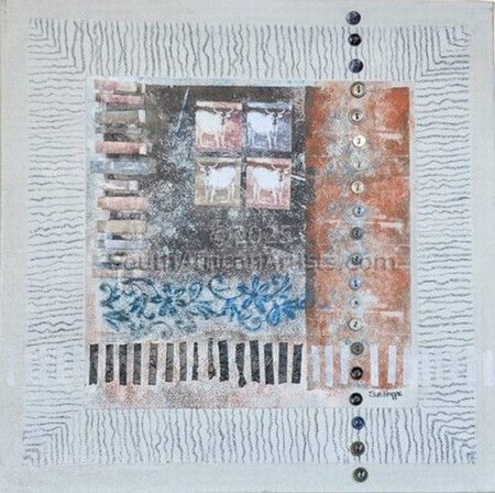 Ceramics: between 1985 and 1990, many group exhibions at regional and National level with APSA. Ceramics: October 1990 Solo at Eastern Cape Society of Fine Arts Photography: 1999 solo at Creative Designs Gallery, Port Elizabeth Painting: 2002-now many Group Exhibitions (both open and ajudicated) at Blyth Fine Art, Cuyler Street, artEC/EPSAC, the Athenaeum Nelson Mandela Bay, Rick Bekker, Montage, Kuhne Boekkooi and Lipschitz Gallery in Plettenberg Bay, Leisure Isle Gallery in Knysna and VOA in Cape Town. May 2006 Solo at Kuhne Boekkooi Gallery, PE June 2007 Solo at Kuhne Boekkooi Gallery, PE October 2007 Solo at Anne Bryant Art Gallery, East London Feb 2008 Historic Port Elizabeth at EPSAC, PE March 2008 War and Peace at Cuyler Street Gallery, PE Nov 2009 4 Women at EPSAC, PE with Esme Goosen, Rina Badenhorst and Roma Cloete. International painting Exhibition 2010 at Lessedra Gallery, Sofia, Bulgaria. June/July 2012: Alone:together with Jimmy Ndlovu and Ayanda Mji at National Arts Festival in Grahamstown March 2013: on the (t)horns of a dilemma, Protecting what we value at artEC with Dorelle Sapere. June/July 2013: Alone:together Again with Jimmy Ndlovu, Litha Ncokazi and Ayanda Mji at National Arts Festival in Grahamstown. June/July 2014: Don't Fence me in at National Arts Festival in Grahamstown. June/July 2015: Locking Horns with Earth and Sky with Donve Branch and Stephanie Liebetrau at National Arts Festival in Grahamstown. June/July 2016: UnLocking Horns with Donve Branch and Stephanie Liebetrau at National Arts Festival in Grahamstown. June/July 2017: UnLocking Horns with Donve Branch and Stephanie Liebetrau at National Arts Festival in Grahamstown. 2019/2020 Prince Albert Open Studios 2021 solo ot Old Nick, Plett Arts Festival Featured in book "Art and Artists of the Eastern Cape" published by MBDA, 2011 Work in many private and corporate collections both in SA and overseas, including the World Bank and William Humphreys Art Gallery in Kimberley.