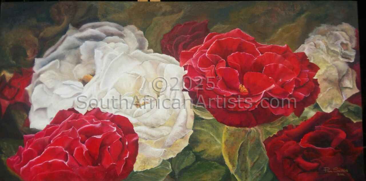 Sometimes a picture touches something within you. That's how these roses affected me. It was a joy to do this painting, with rough background roses and colour and then bringing out the beauty of the two in front. It's a painting to be cherished.