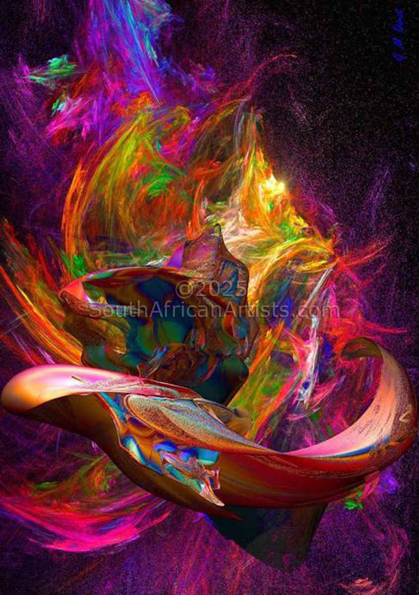 Dr. Durst loves to paint the beauty of Cape Town--especially the Waterfront, Table Mountain, ocean views, spring flowers, the vineyards and, of course, the people of the Cape. According to Dr. Durst, "I like to re-create a "magical moment" that I have experienced. As I do so, I strive to achieve a delicate balance between the realism and impressionism of the scene and the even greater intensity created by fractals with light, texture and colour. At a certain juncture, an integration occurs. The captured moment in time is taken in without judgment by the brain, allowing the vibrational intensity to adjust the frequency of the hearts rhythms. As the integrated process continues, the viewer becomes awash with positive emotions, a sense of peace, and greater coherence all of which contribute to physical, mental and spiritual healing."