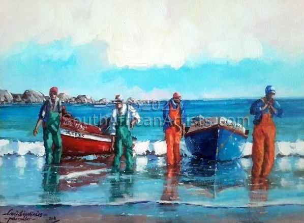 Hi, I am an artist who loves the sea, I live in a little coastal village called Jacobs bay on the West Coast of South Africa not far from the Fishermen's Village "Paternoster" which is the place of my inspiration and exhibitions ...The local restaurants there also display many of my work. My studio is always open for the public or other artists that need inspiration.. my other interest is music and I play acoustic guitar and compose my owns lyrics and words..