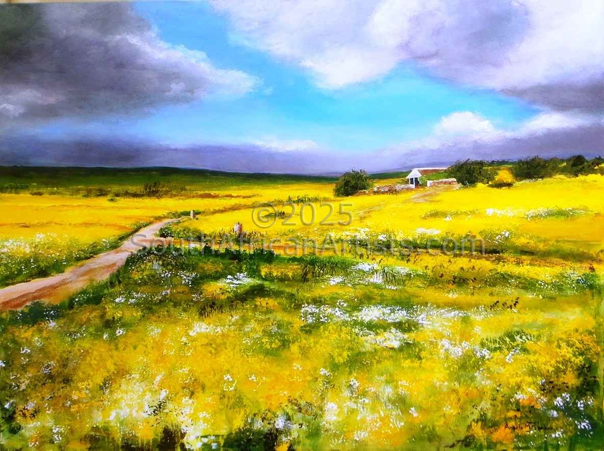 I started painting after I retired from Industry, and the best thing I did was to join the Watercolour Society of South Africa, where I made many wonderful friends and I gained my Associate of the Watercolour Society in 2004. I then switched to acrylics, as the speed of execution of each painting and the bright colours appealed to my impatient nature. I currently paint with the Ivy Artists- a group of ex students of Sue Kemp, who have become firm friends and enthusiastic producers of artworks.