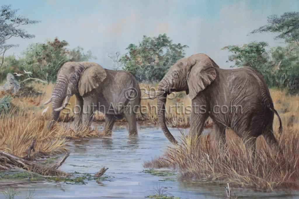 1936 - Died 18 February 2021 I was born in Holland and immigrated to Rhodesia (now known as Zimbabwe) in 1957. I have always enjoyed art from a very young age and showed an early potential in my school artworks, winning many competitions in my Native Holland. I started my full time career in 1980. My husband Piet and I set up our own business from our home Over the past 35 years I have done more and more wildlife pastels, oils and watercolours, my paintings receiving wide acclaim wherever I have exhibited, and I enjoy my field trips with my husband. I have travel widely throughout Southern Africa, Namibia, Kenya, Zambia and Botswana. I have partaken in an exhibition in the Netherlands, which was opened by Prince Bernard, Patron of the World Wild Life Fund. The exhibition was to raise funds for the translocation of elephants in south East of Zimbabwe. I have also exhibited in Zambia raising funds for a child orphanage, and also attended the Cites Conference exhibition here in Zimbabwe, and has sold many paintings to Art Galleries in Kenya and Botswana and Zambia as well as in Zimbabwe. Of late I have moved to take up residence in South Africa in the Eastern Cape and now also paint Wildlife, Birds and Land & Seascapes God willing this will be successful and bring pleasure to many people. She paints now from her lovely home in Port Alfred and has exhibited in Port Alfred and East London, P.E. and attended the Grahamstown Art Festival 6 years at the Steve Biko building in the dining hall hope to see you all there.