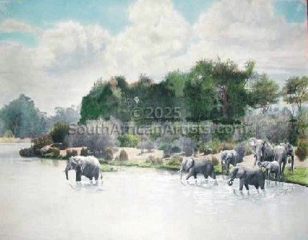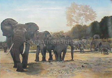 November 1999 I suffered a major stroke which affected my whole right side, being right handed this set me back. It has taken me two years to recover enough to be able to paint again. It will possibly take me another two years to recover fully. Prior to this I painted on a part time basis and work was sold locally and in America. I have now started painting full time and mainly the animals of Africa with my target market being America. I am also currently writing a book about having a stroke and my remarkable recovery to being able to paint again. Price Range US$ 240-1,807 Exhibitions Mainly private prior to my stroke. Works are currently being shown across America Education Interior Design People who chose Garth's work also chose work by: Find other: