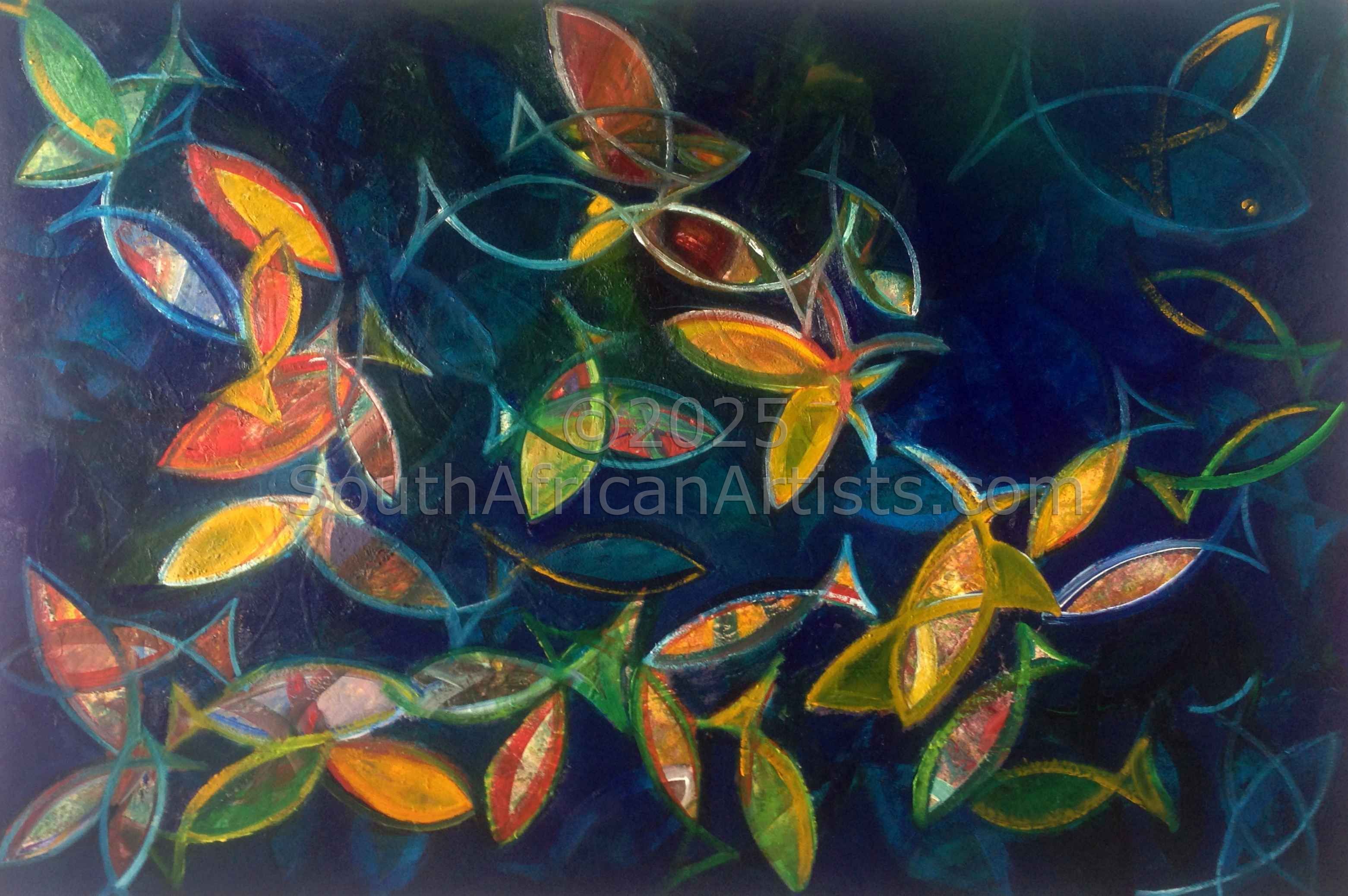 BORN 1958, IN JHB South Africa Raised by two professional radio and stage personalities (parents.) I grew up in a theatre environment where I kept myself busy drawing at the age 6, me backstage, parents onstage 1976 employed by the South Africa defence force. 1978 employed by performing arts PACT as property maker. 1981 Cheif Property maker. 1989 Cheif Decor Painter Art training and working together with David Mackenzie (British fine artist) for 2 years also work with designers, amongest others, Johan Engels, Anthony Farmer, Neels Hansen and many more. 1985 went to Germany and did a course in prop making. 1984 Received the director's medal for outstanding work on the creations of the K2 decor. 1985 Nominated for "LILIAN AND IVAN SOLOMON AWARD". 1989 Recieved the director's medal for outstanding work on the theatre rendezvous. 1990 open my own studio. Designing and art work for, The Lost City, Golden Horse Casino, Monte Casino,and 32 restaurants and many more. 1997 Miss World Pageant in Seychells:Decor and props. 1998 Work in Dubia.Art work for Dolphin Group. 1999 work in UK London.Art work for Dolphin Group. 2000 back to SA where i am settled and working out my studio at home painting and loving it, and puting back what I got out of living and still learning, onto my canvases.